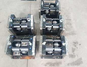 輥模,它是由一組高耐磨材料、精加工孔型的輥輪組成,輥輪數量上的選擇是根據材料、線徑、減面率的不同選擇不同的配置(從4個到10個不等),線通過輥模時是靠拉力和線與輥輪孔型之間的摩擦帶動輥輪轉動,線出來時被輥輪孔輥壓減徑.標準輥模出線的直徑公差+/-0.02mm,特殊型號的輥模出線直徑公差+/-0.01mm;輥輪的正常使用磨損壽命(使用到公差超出設計公差時)與加工材料類型、表面狀況和輥模維護管理有關,嚴格意義上與加工線的長度成一定比例關系,但按生產管理習慣,同一用戶一般產量按重量單位做統計(同樣噸數,線徑大噸數高但長度?。?。磨損后的輥輪還可修磨改制成其它規格的輥輪,類似拉絲模的修模。